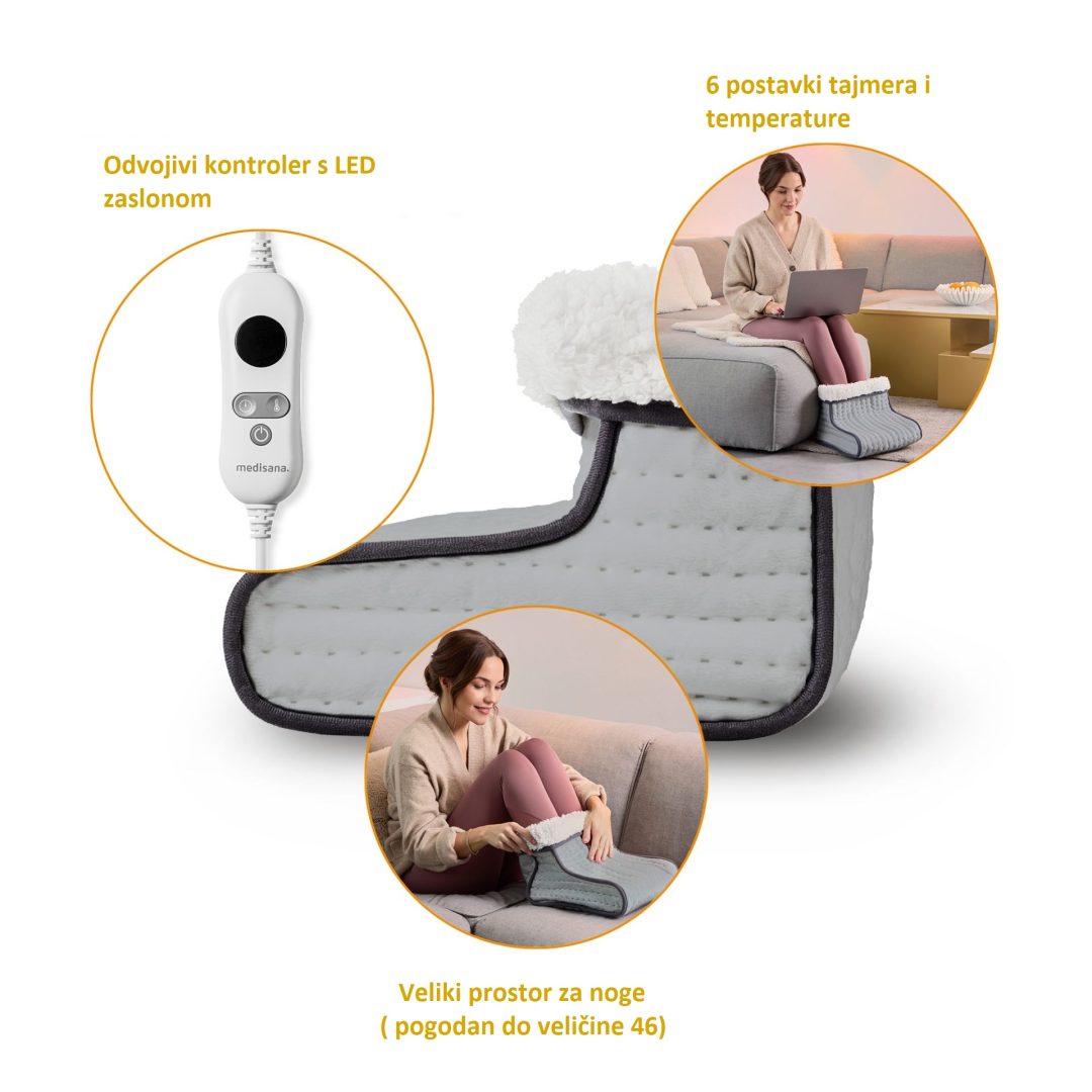- 6 pojedinačno odabranih postavki temperature za ciljanu toplinu stopala.