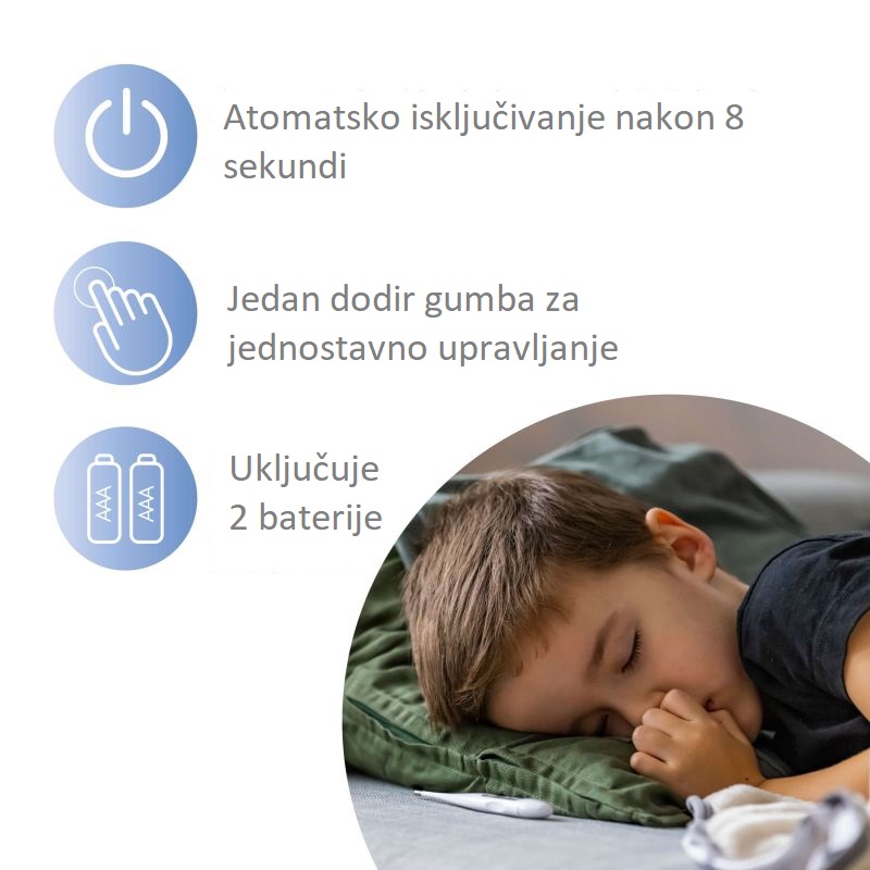 – Napajanje: 1,5 V, 2 x AAA baterije